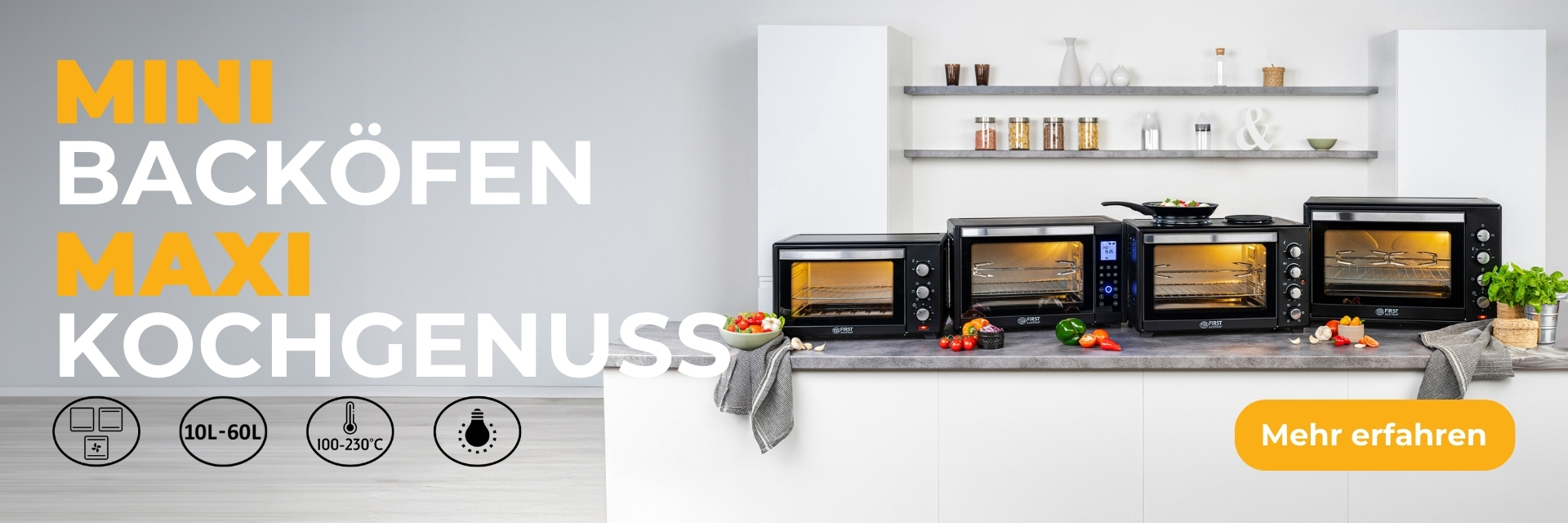 TZS First Austria Minibackofen, 2000 Watt, 60L,Kochgenuss auf den Punkt! Vergessen Sie missratene Gerichte – mit dem TZS First Austria Mini-Backofen gelingt Ihnen jedes Essen perfekt. Dieser elektrische Mini-Backofen mit 2000 Watt Leistung erreicht bis zu 230 °C und sorgt beim Backen, Grillen und Rösten für optimale Ergebnisse. Die praktische Timer-Funktion mit automatischer Abschaltung lässt Sie entspannt bleiben, während die Innenbeleuchtung jederzeit einen Blick auf Ihre Speisen ermöglicht. Ob Pizzas, Aufläufe oder gegrilltes Fleisch – die Umluftfunktion und der integrierte Drehspieß sorgen für köstliche Ergebnisse. Mit vier Einschubebenen und einer doppelverglasten Tür bleibt die Hitze optimal im Ofen. Das robuste Edelstahl-Design passt in jede Küche, und das herausnehmbare Krümelblech erleichtert die Reinigung. Der TZS First Austria Mini-Backofen ist der perfekte Küchenhelfer – kompakt, vielseitig und leistungsstark. Ideal für kleine Snacks und große Mahlzeiten. Entdecken Sie die Möglichkeiten dieses praktischen Geräts und genießen Sie köstliche Gerichte mühelos! • 60 Liter Fassungsvermögen• 2000 Watt Leistung• Gleichmäßige Hitze bis 230 °C Lieferumfang: - 1x Minibackofen, Grillgitter, 1x Backblech, 1x Krümelblech, 1x Drehspieß von TZS First Austria. TZS First Austria steht seit rund 30 Jahren für Qualität, Zuverlässigkeit und Innovation. Entdecken Sie eine Vielzahl an Qualitätsprodukten für den Haushalt, die Ihnen den Alltag erleichtern. Mit modernen attraktiven Designs verleihen Sie Ihrem Zuhause einen besonderen Touch – und das stilvoll und erschwinglich.