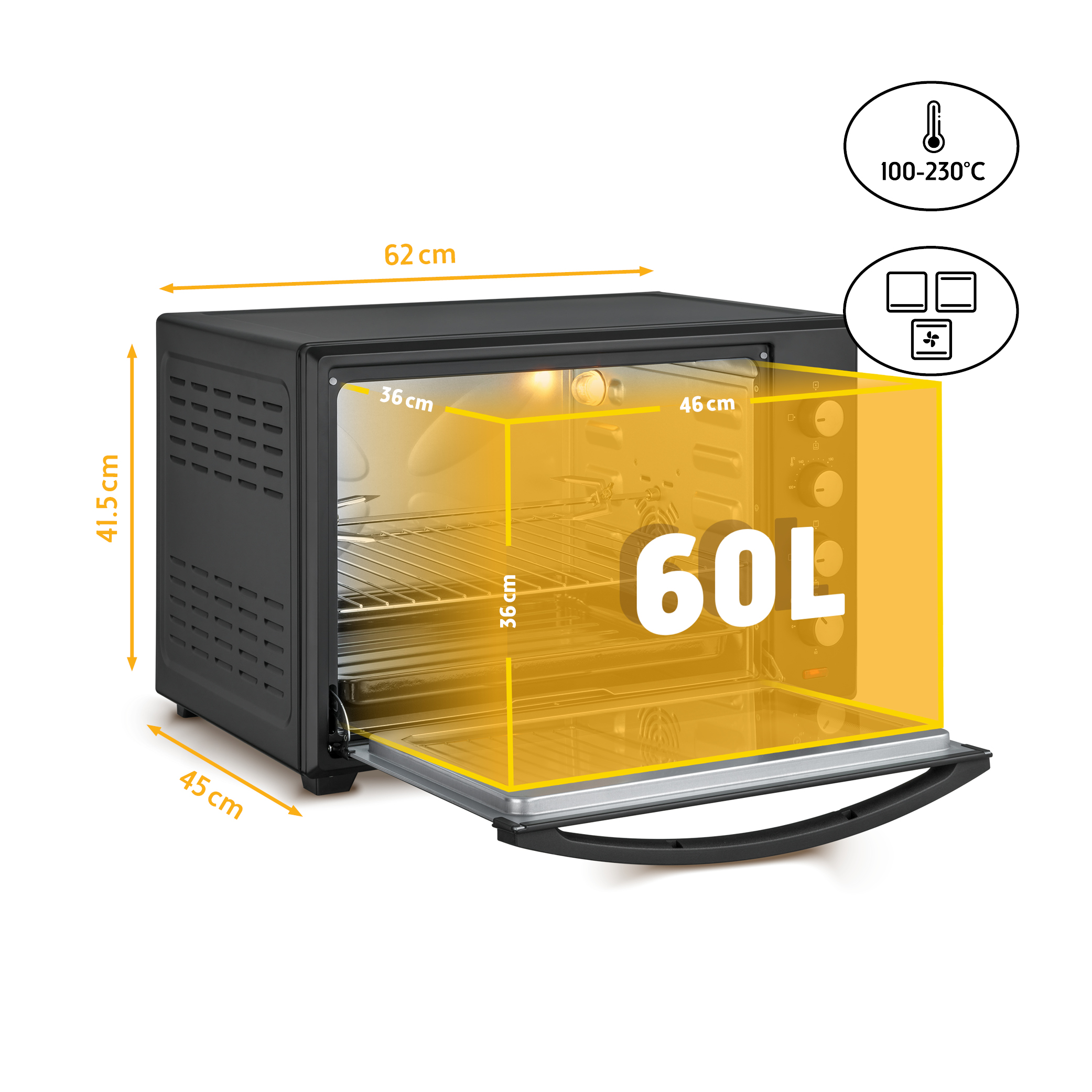• Gleichmäßige Hitze bis 230 °C