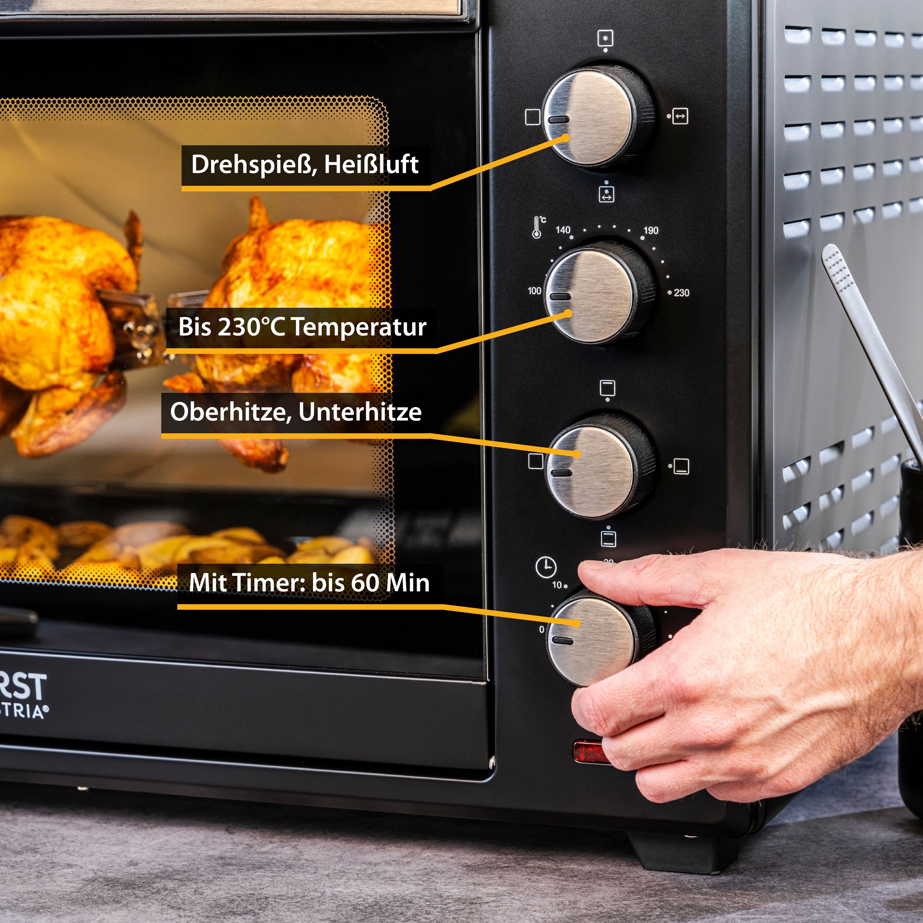 Minibackofen | 60L | 2000 Watt | Rotisserie | Umluft