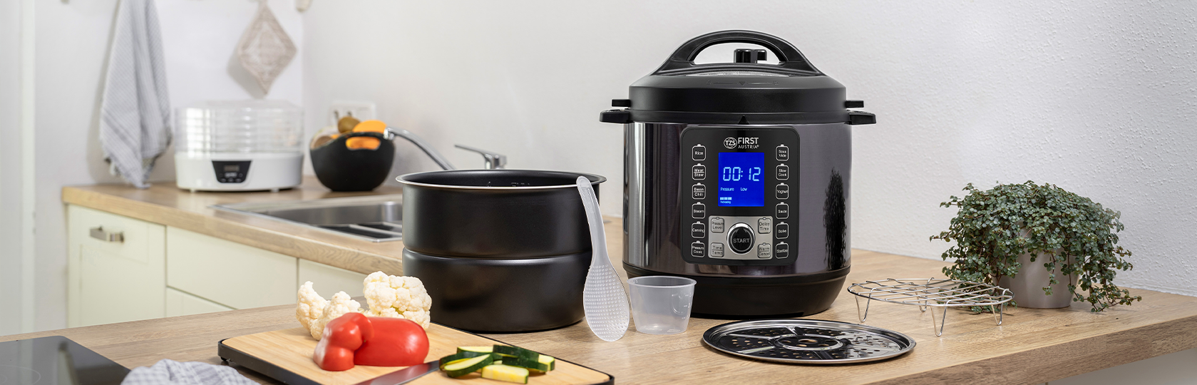 Elektrischer Schnellkochtopf 6 L, 1000 W, antihaft & digital - Grau