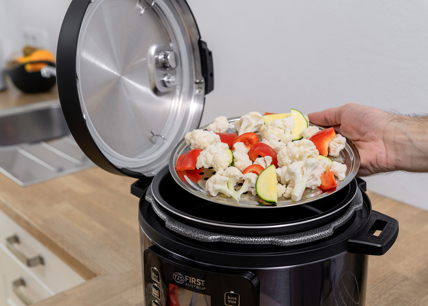 Elektrischer Schnellkochtopf 6 L, 1000 W, antihaft & digital - Silber