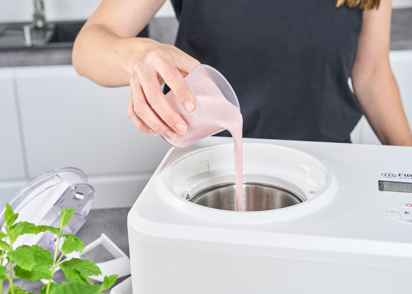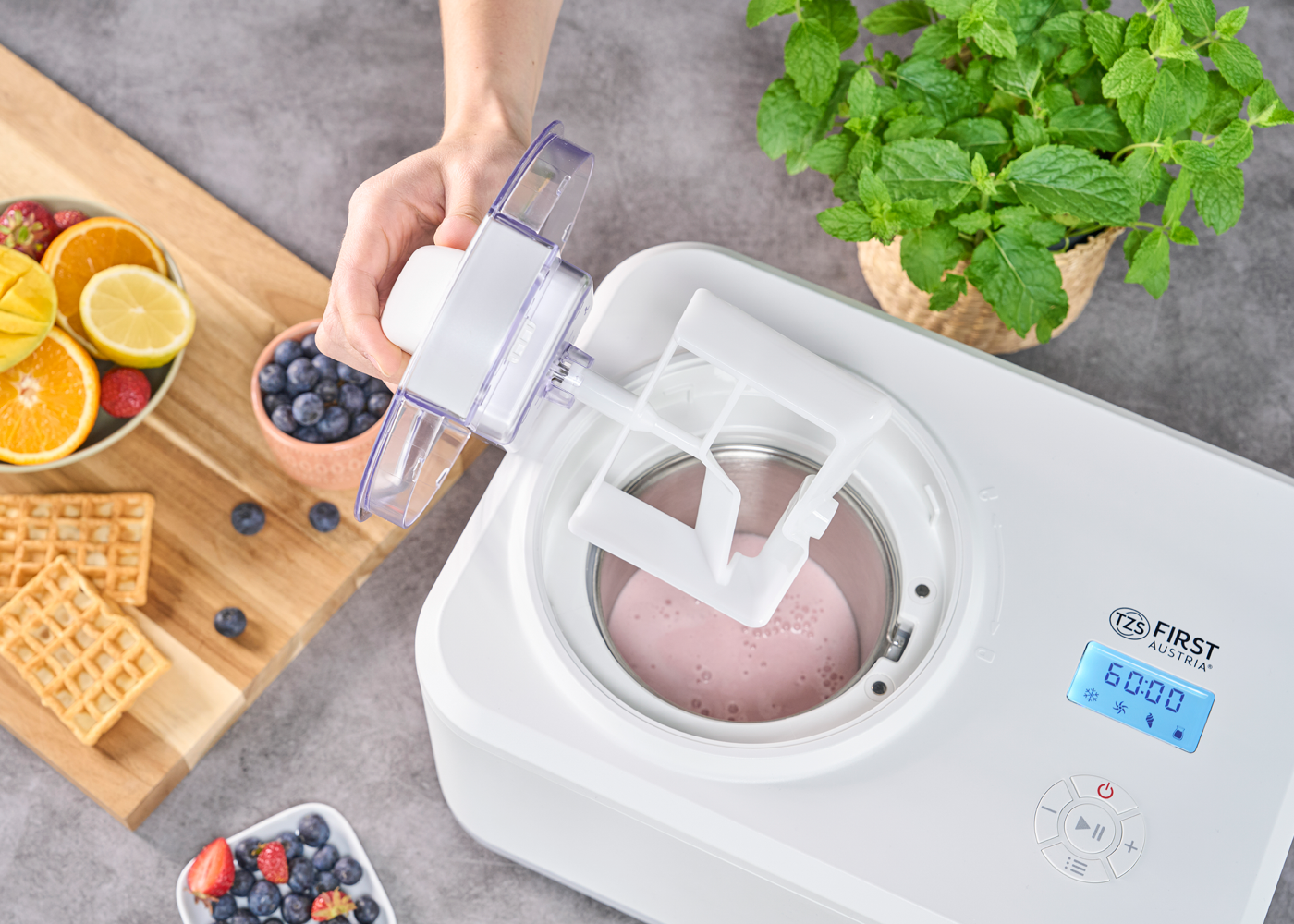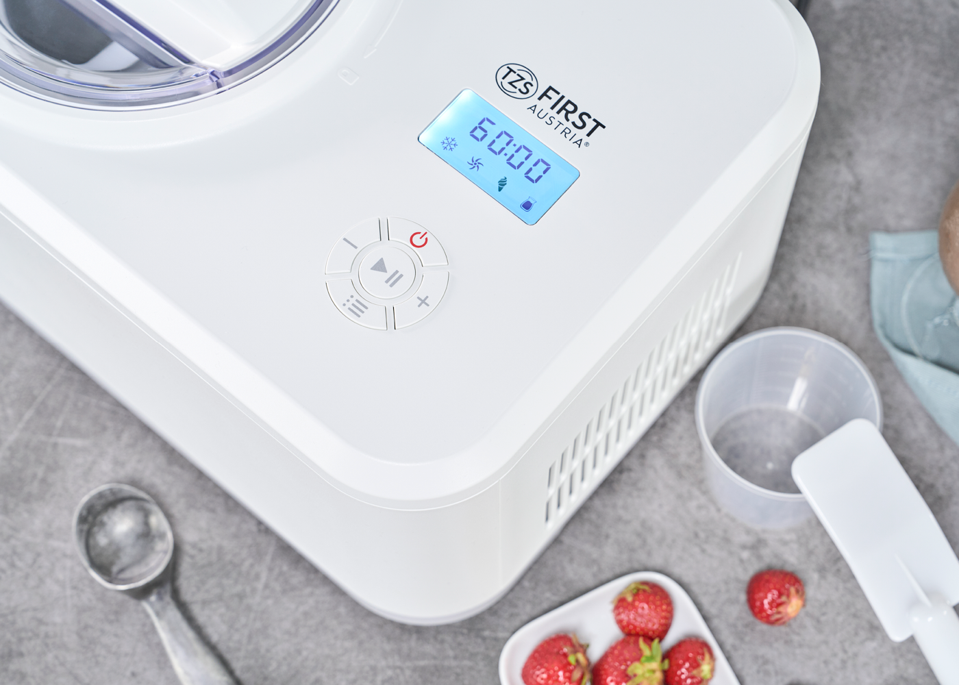 Eiscrememaschine mit Joghurtfunktion, 1 l Edelstahl, rosa, Kompressor, LCD-Display - Weiß