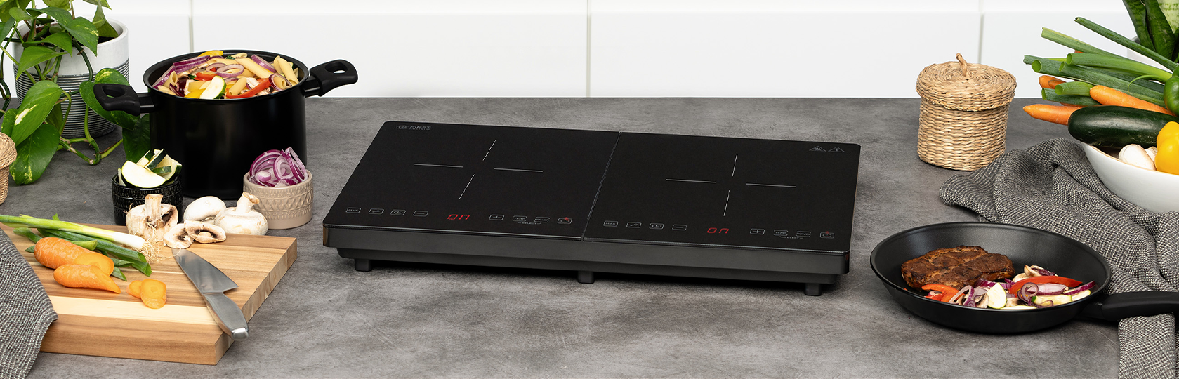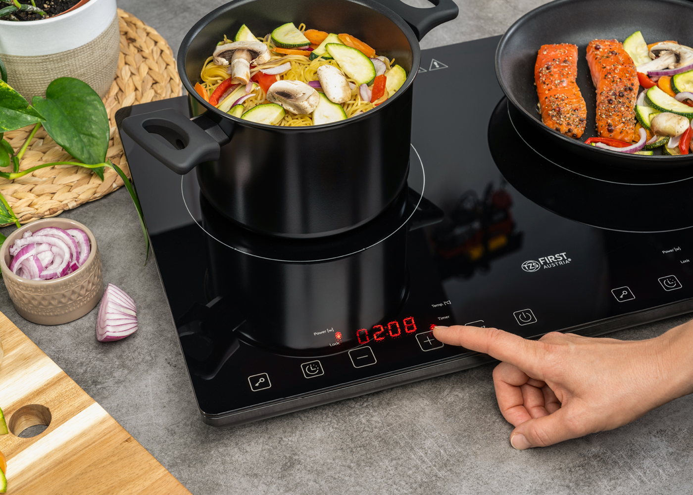 Induktions-Doppelkochplatte 2 × 210 mm, digital & kompakt
