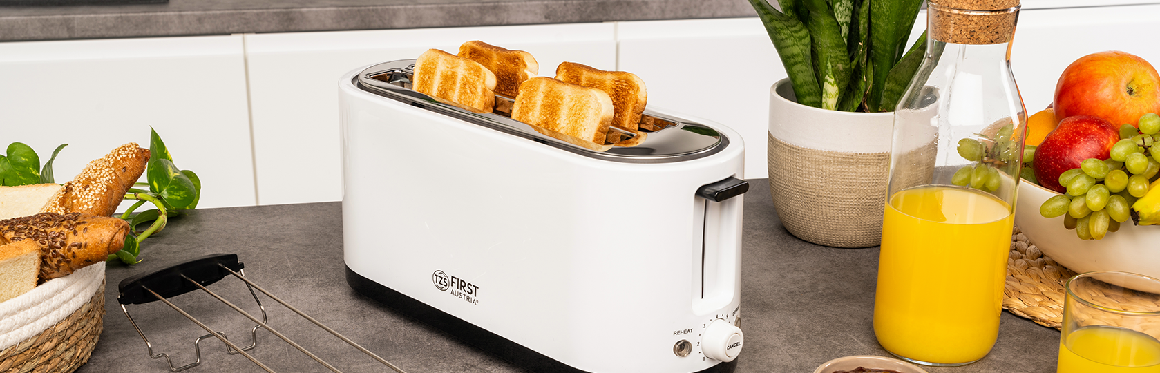 4-Scheiben-Toaster mit Brötchenaufsatz & XXL-Schlitzen