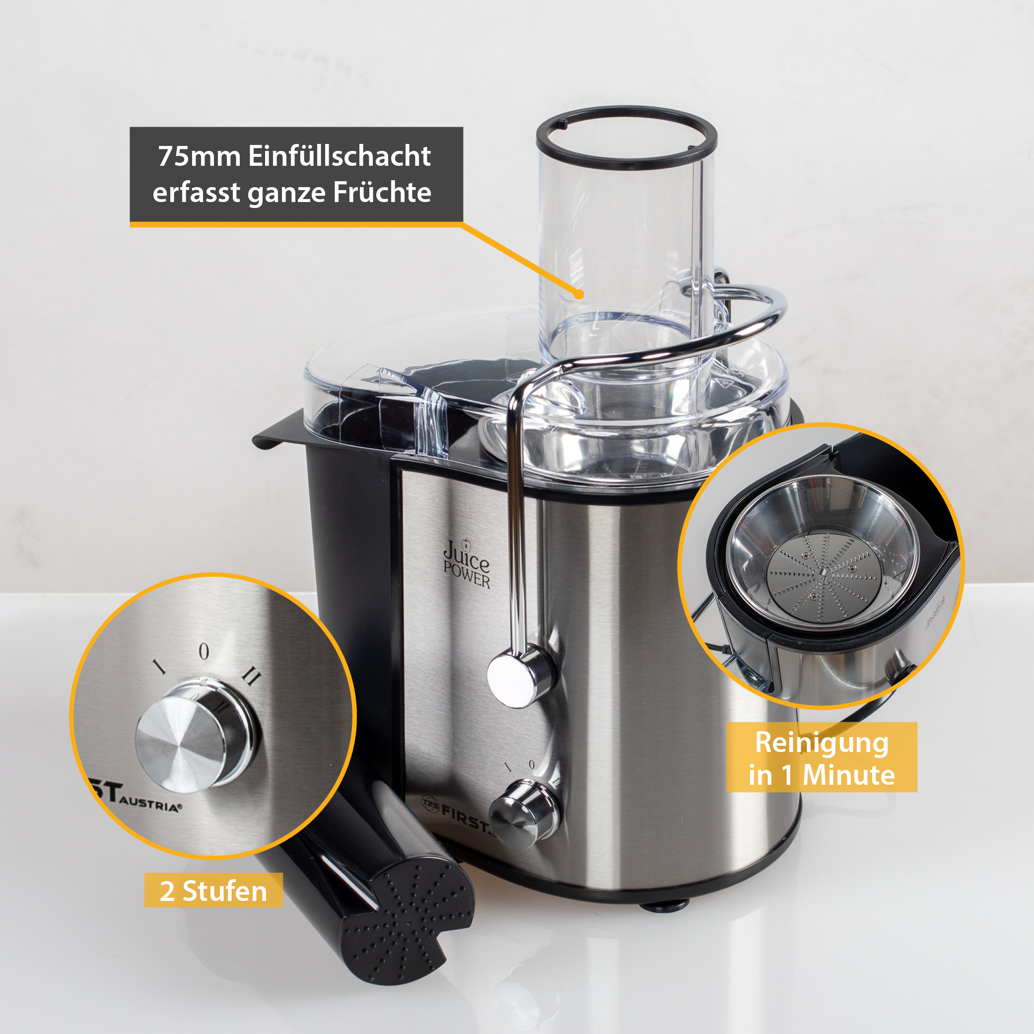 - 1 x Entsafter in Stahl/Schwarz, elektrischer Entsafter von TZS First Austria