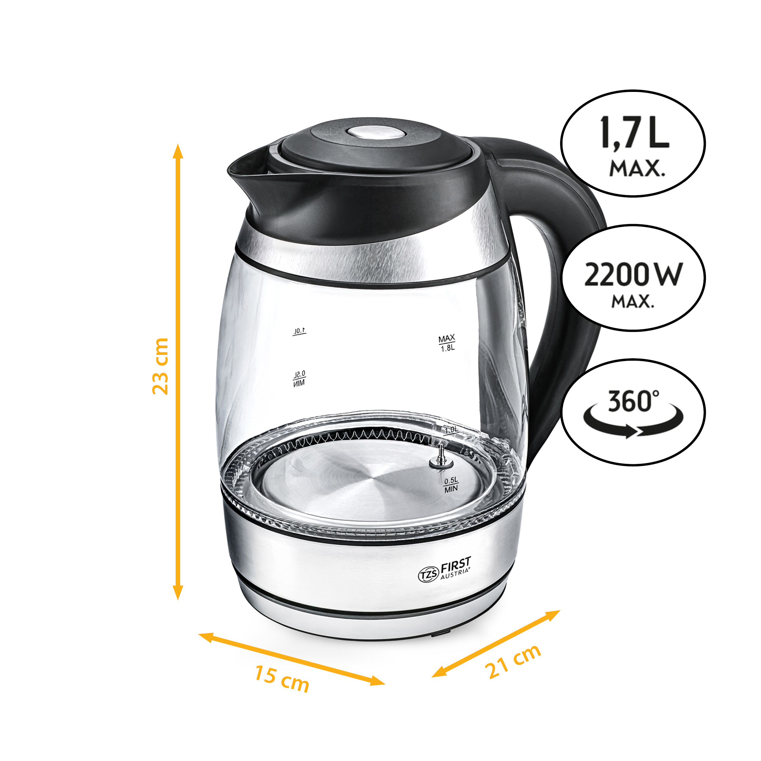 Glaswasserkocher 2200 Watt | 1,8 Liter | Regelbare Temp.