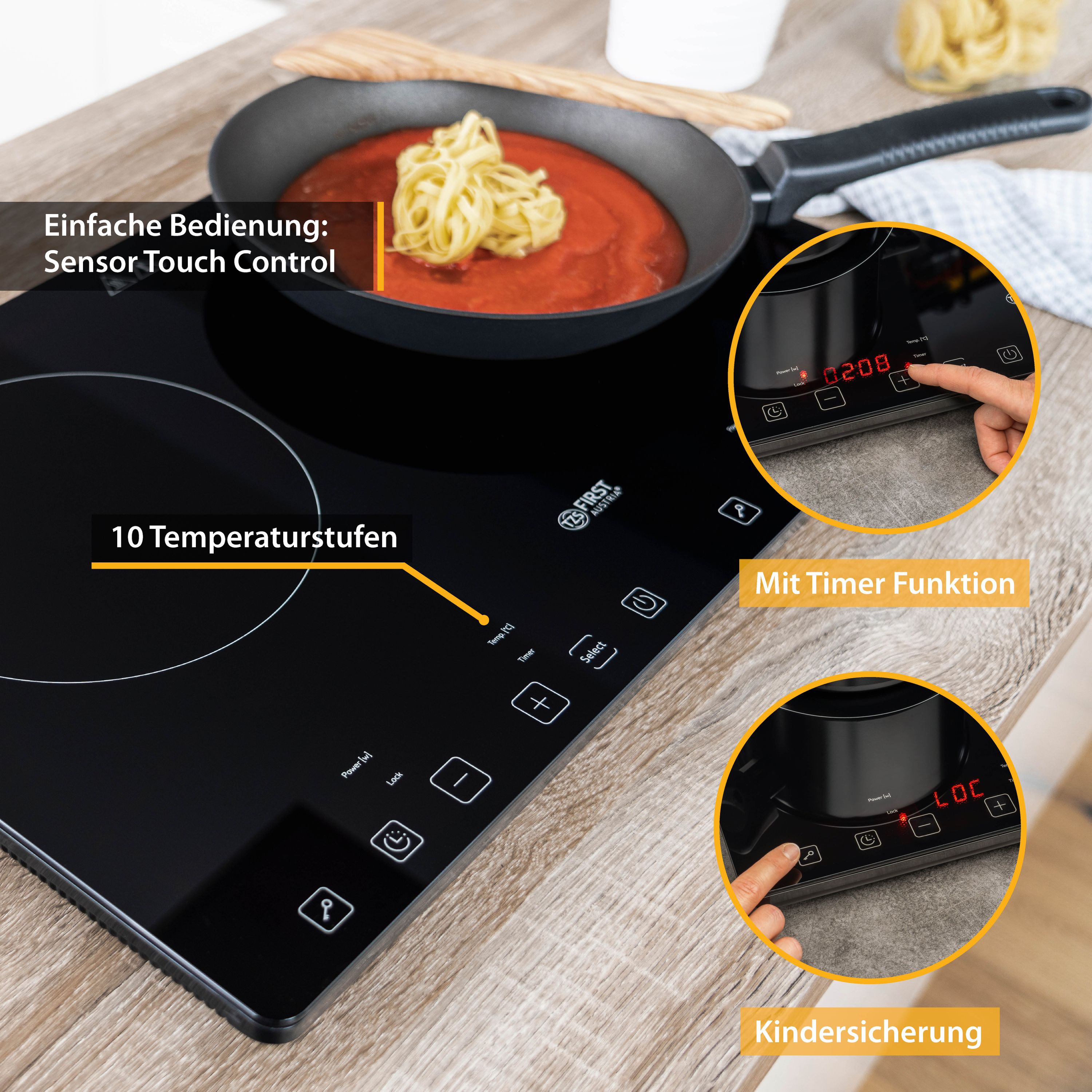 Sicherheit steht bei dieser Induktionsplatte an erster Stelle. Die Kindersicherung verhindert, dass kleine Hände die Kochplatte bedienen können. Der Überhitzungsschutz stellt sicher, dass die Platte niemals zu heiß wird, um Ihre Sicherheit zu gewährleisten. Die Touch Control-Funktion ermöglicht eine einfache und intuitive Bedienung des Geräts.