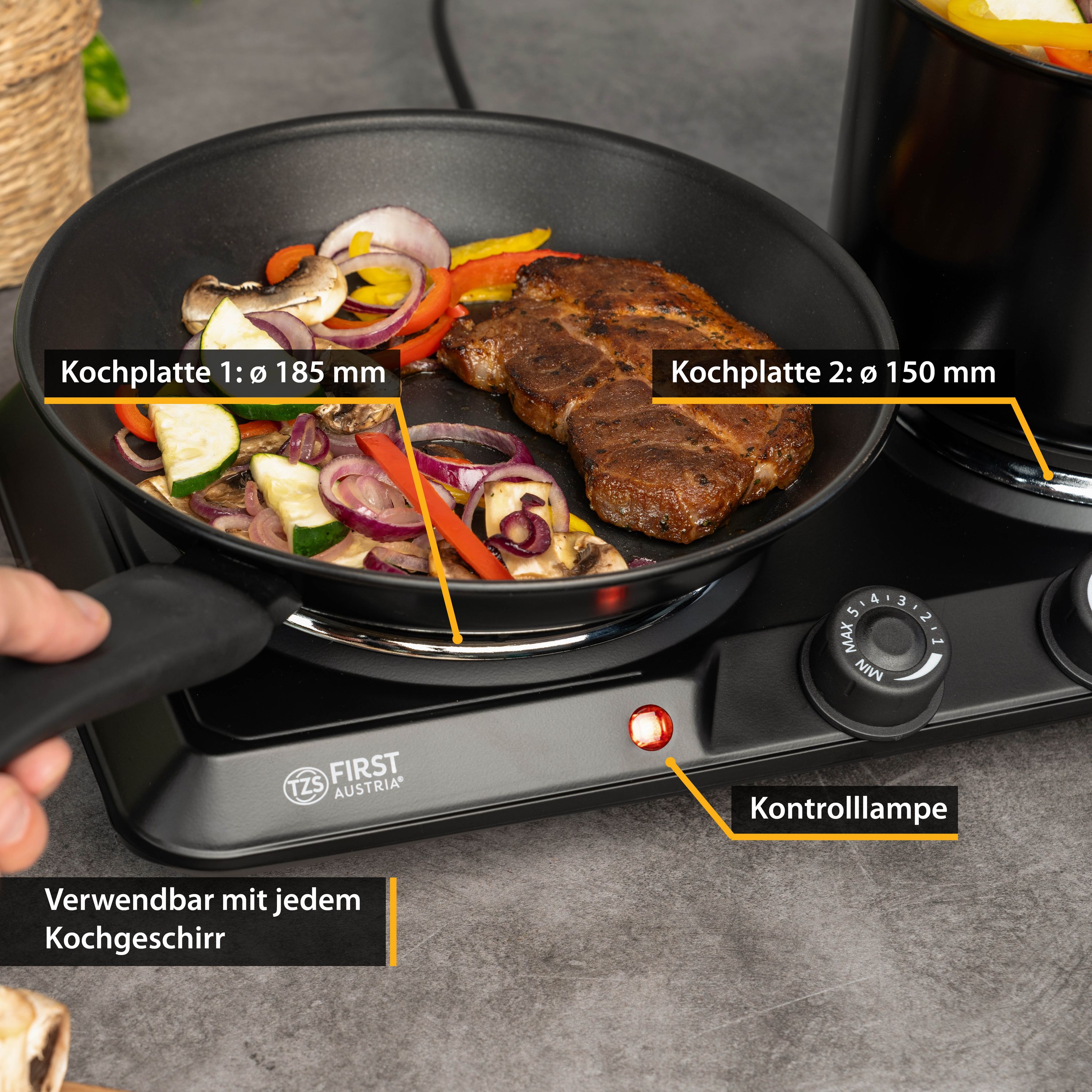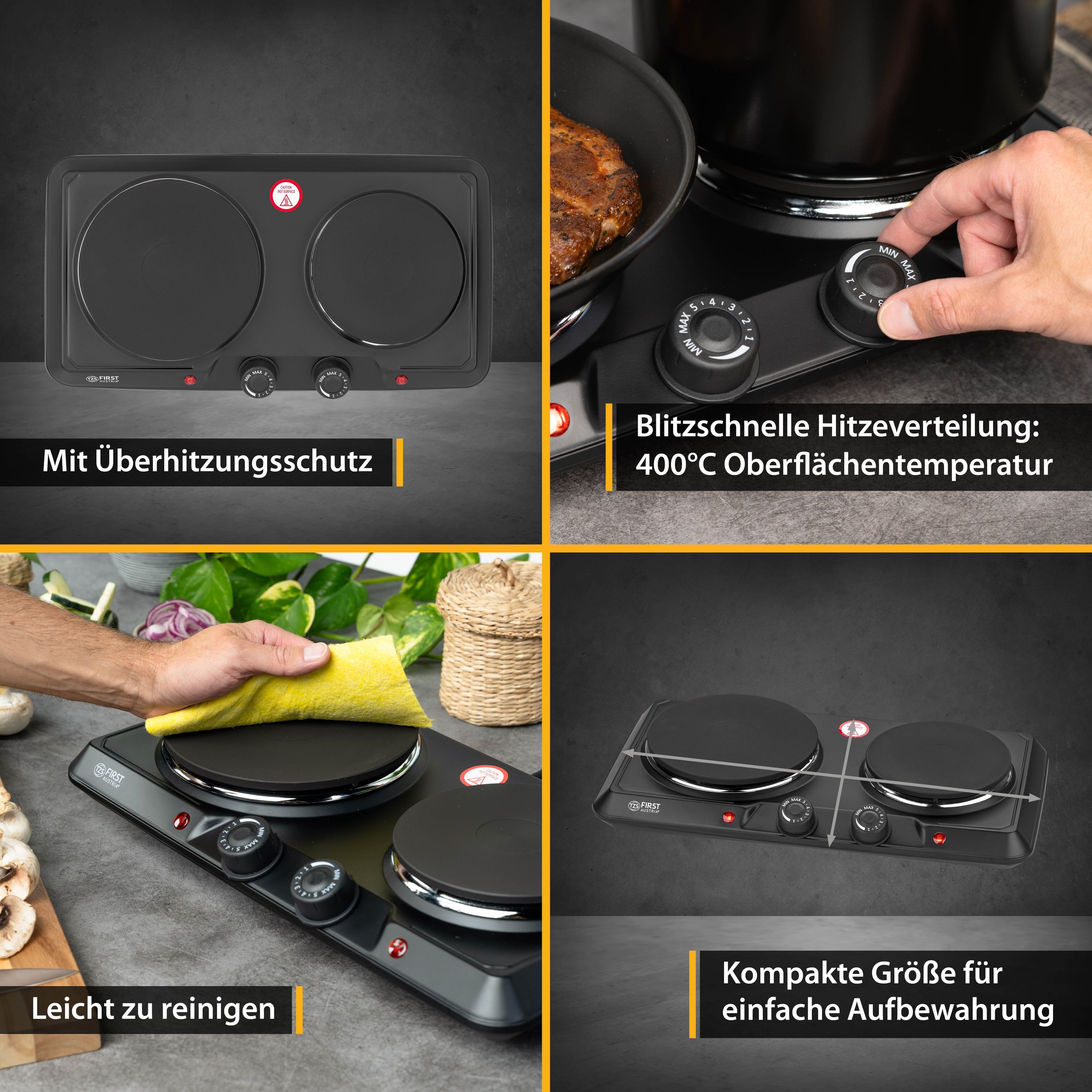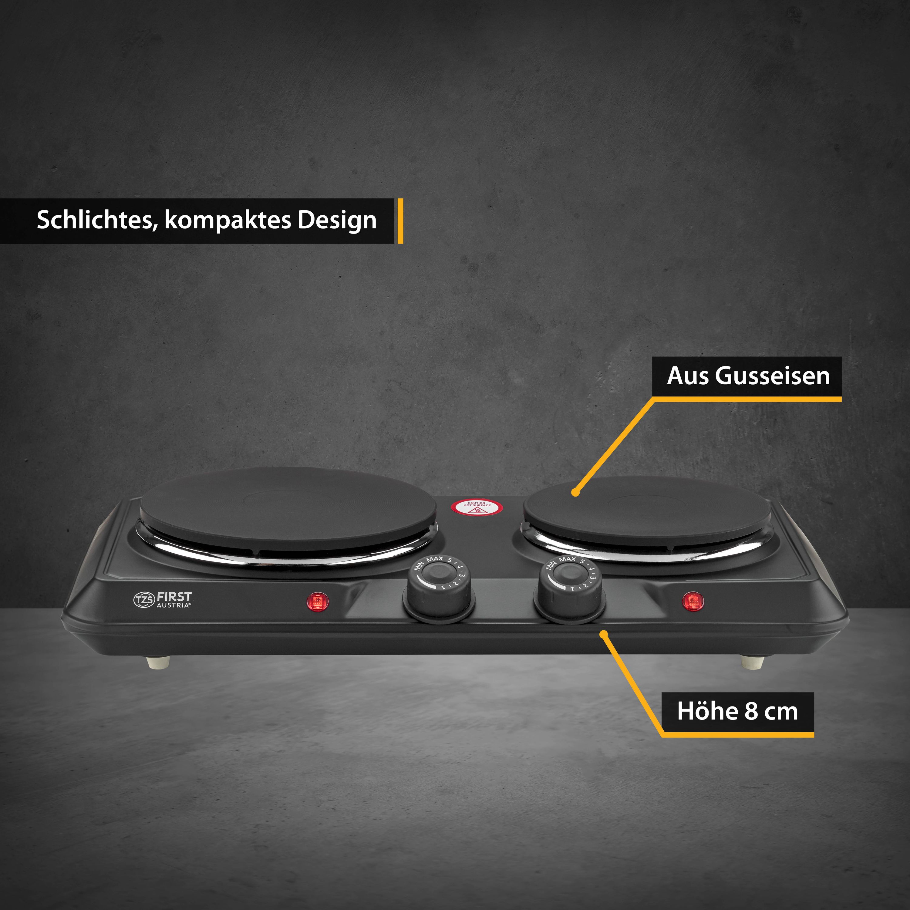 TZS First Austria mobile Gusseisen Doppelkochplatte, 2500 W
