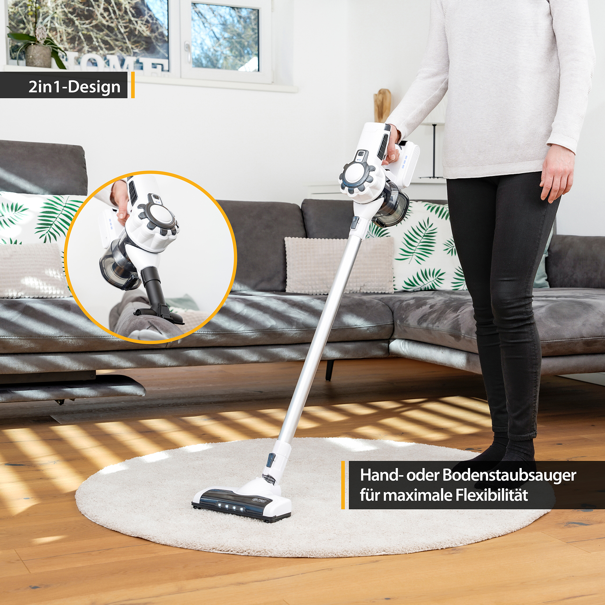 Unser 2-in-1 Akku-Staubsauger beeindruckt nicht nur durch Technologie, sondern auch durch Komfort. Dank des Saugrohrs und seinem leichten Gewicht von nur 2,6 kg ermöglicht er eine mühelose Reinigung