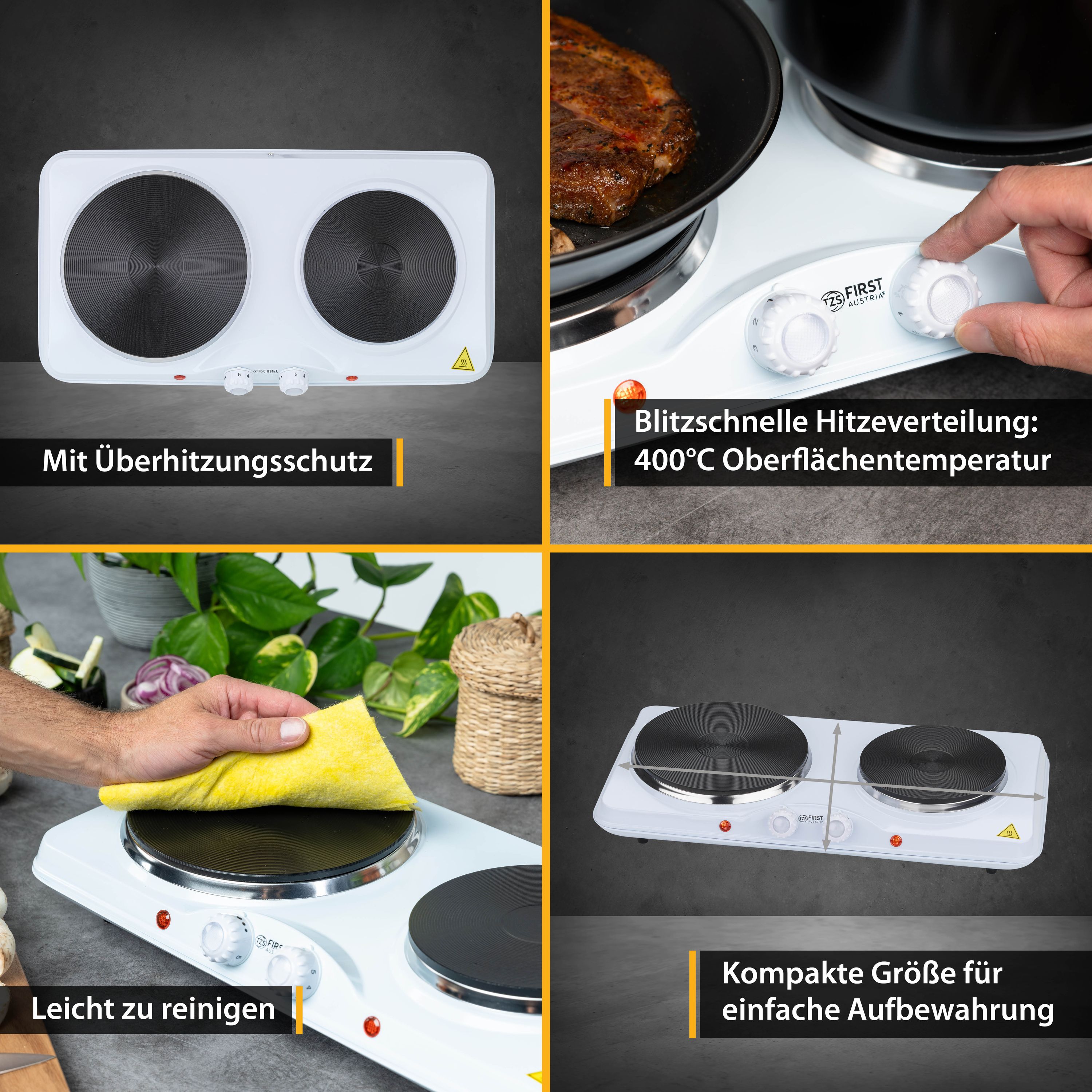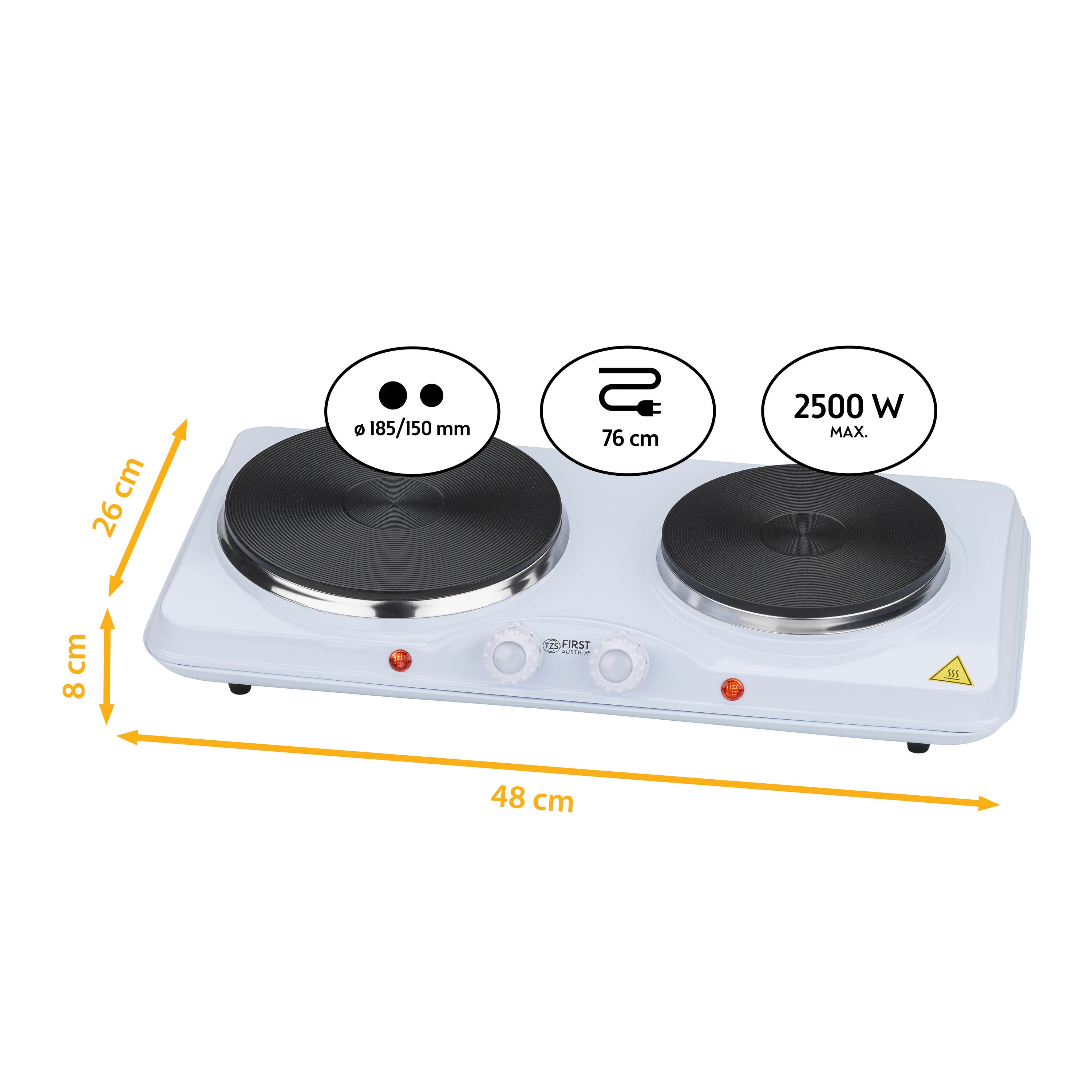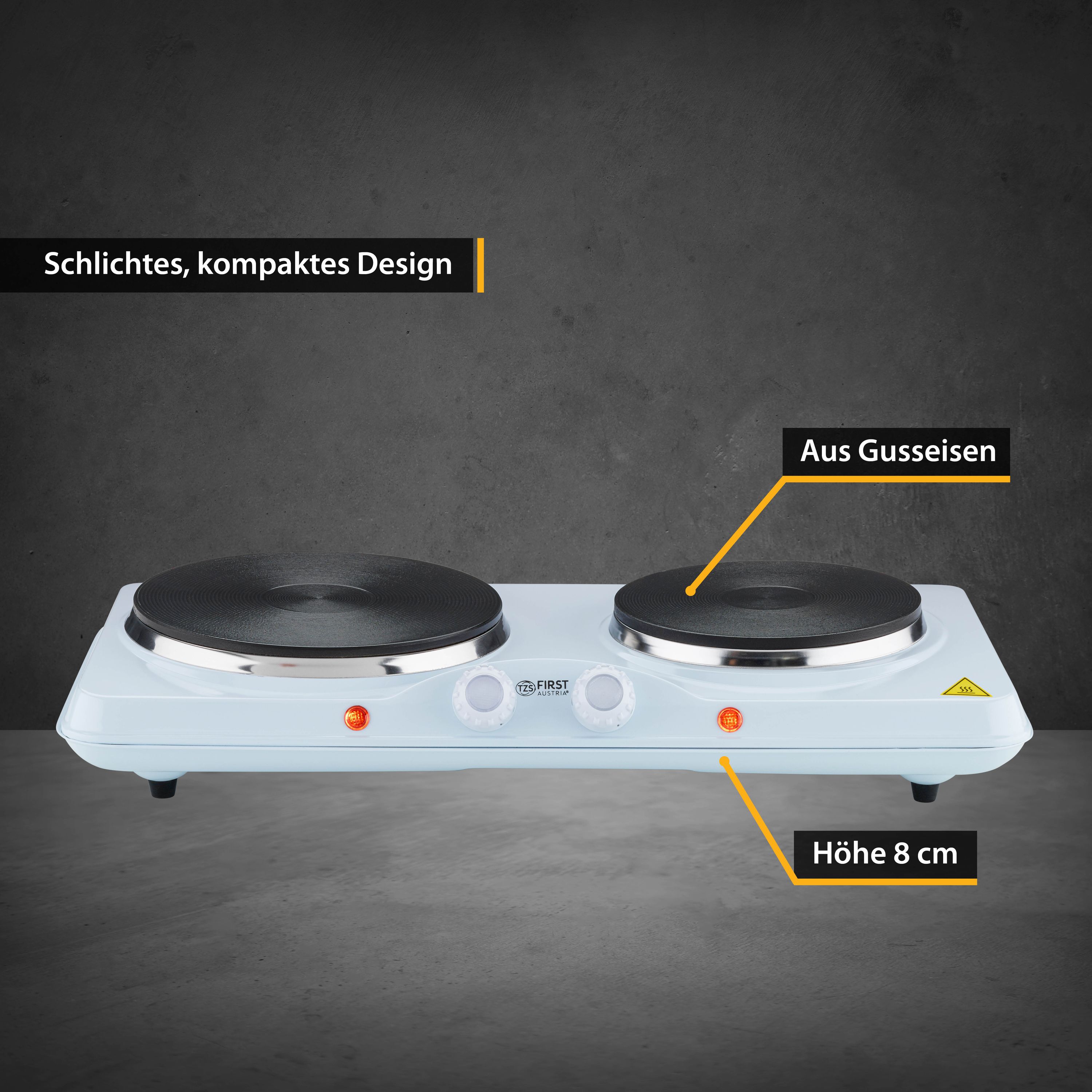 TZS First Austria mobile Gusseisen Doppelkochplatte, 2500 W