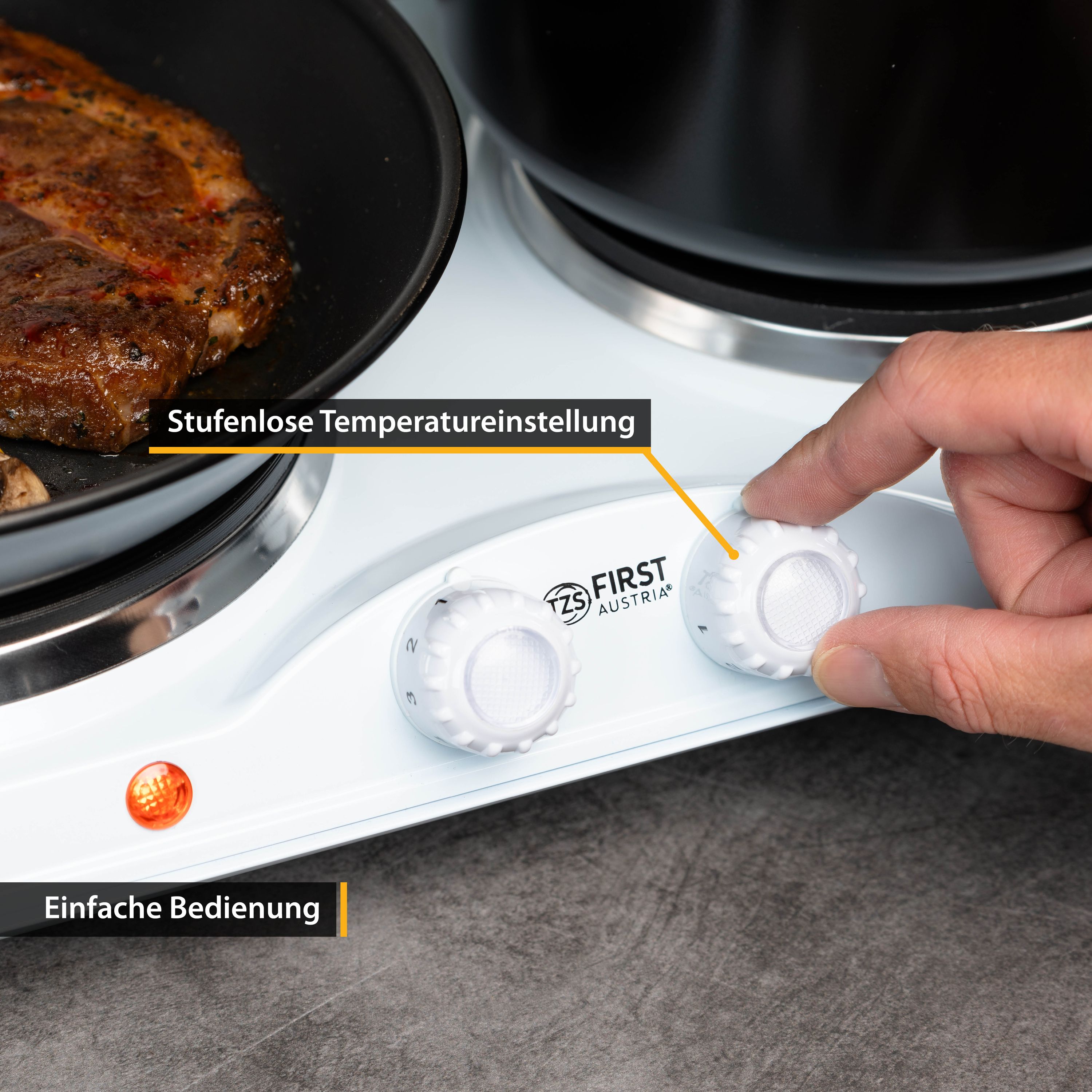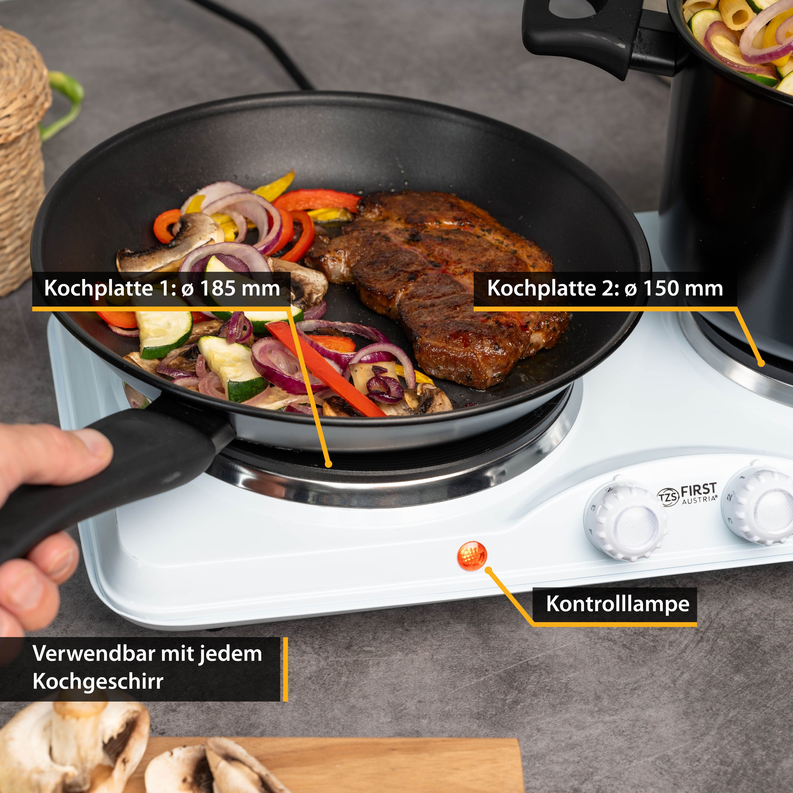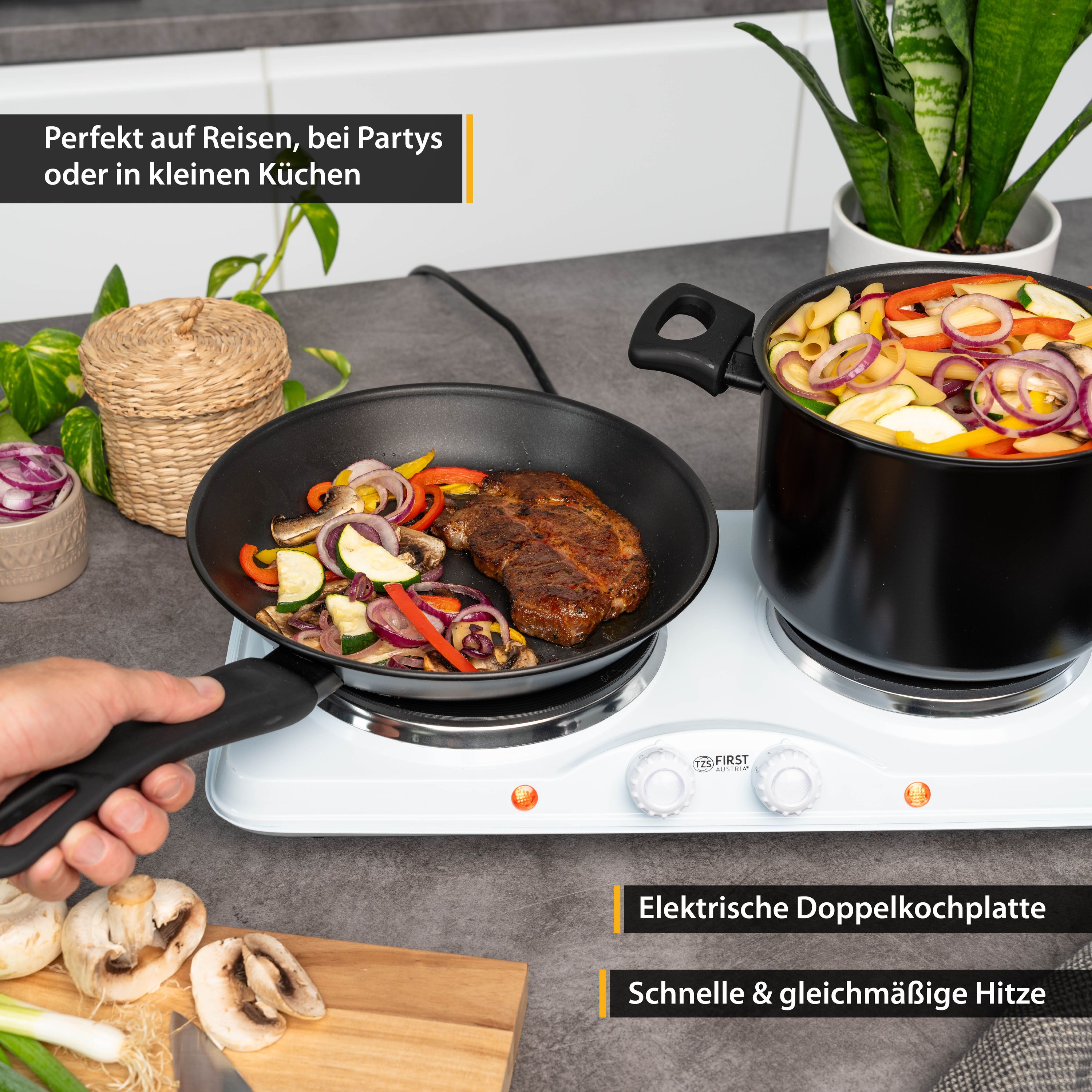 TZS First Austria mobile Gusseisen Doppelkochplatte, 2500 W