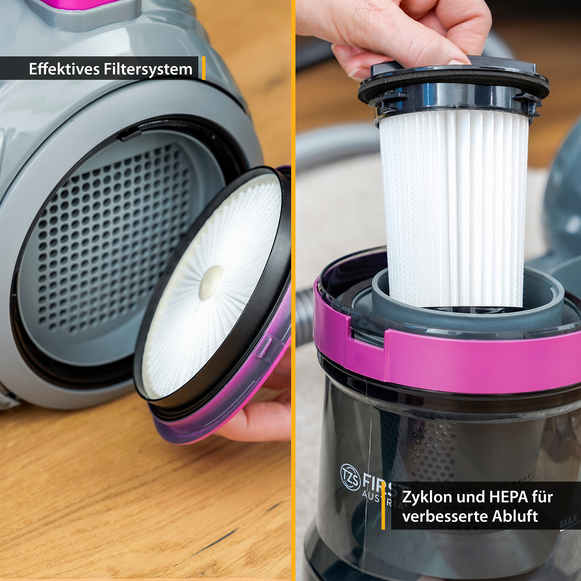 TZS First Austria Beutelloser Staubsauger - 800W HEPA Filter für Allergiker, 2L